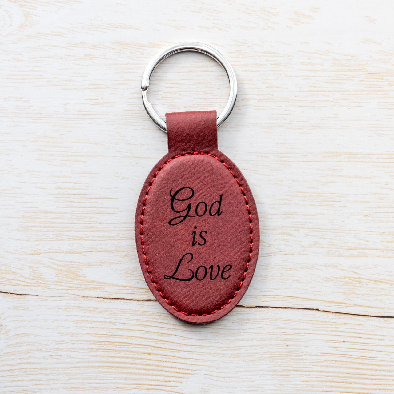 【第一ヨハネ4:16】シンセティックレザーキーホルダー