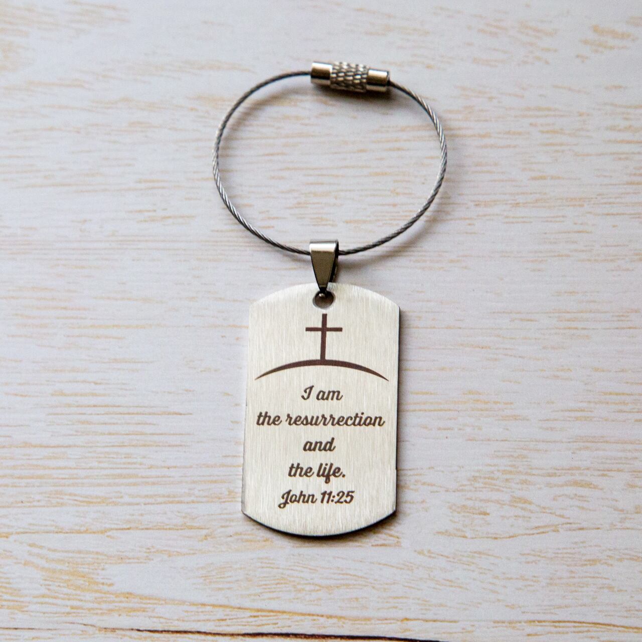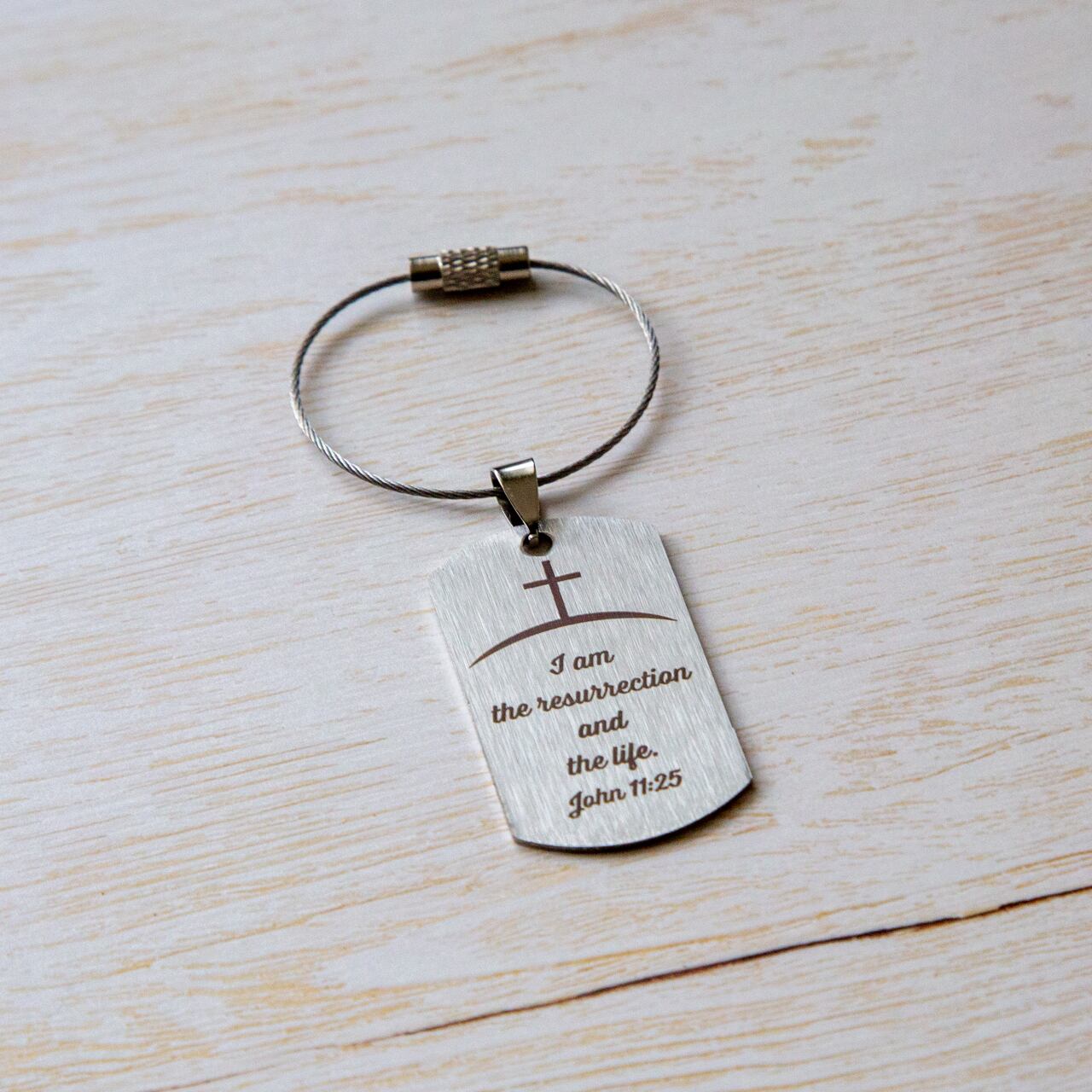 【ヨハネ11:25 十字架】ステンレスタグキーホルダー