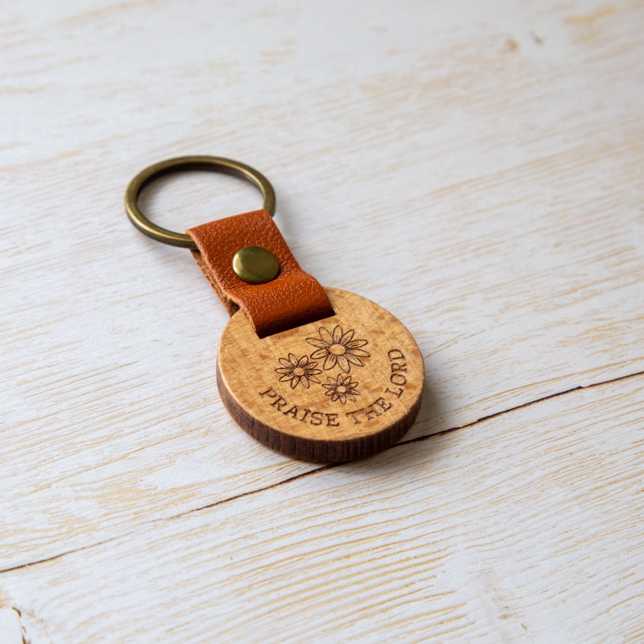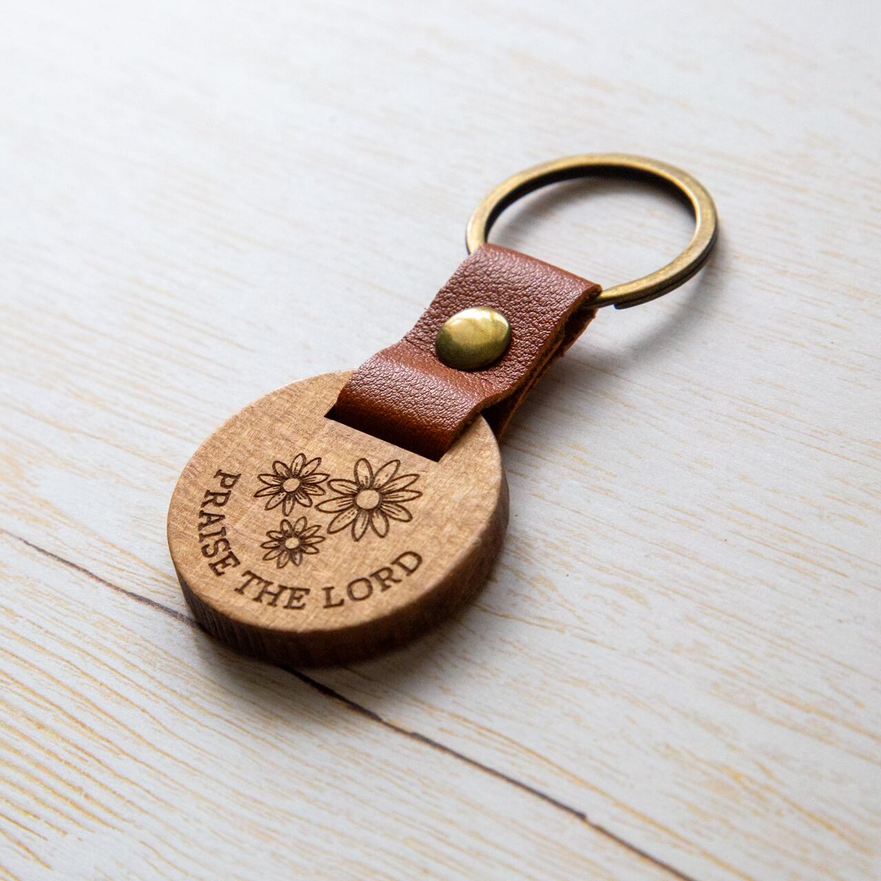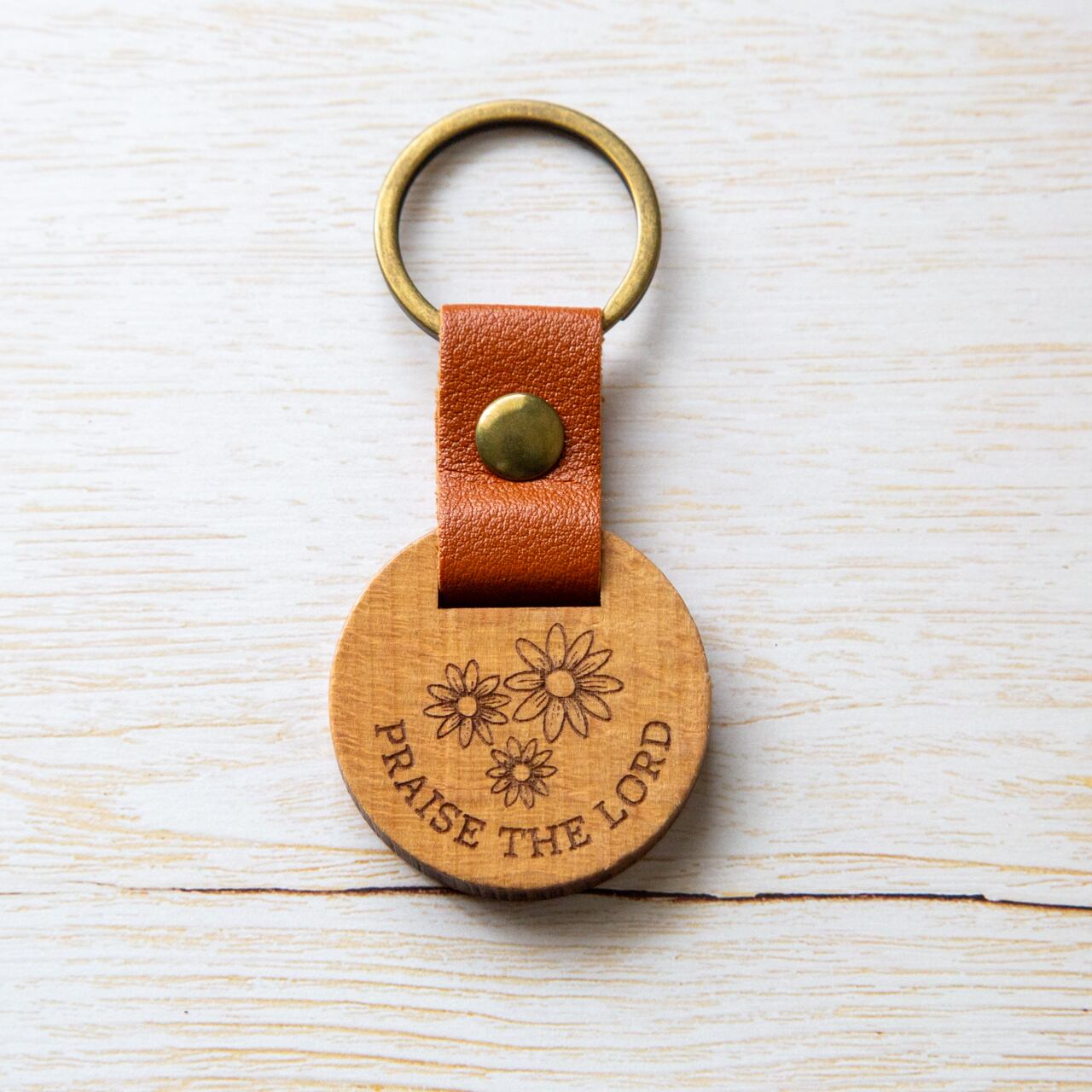 【PRAISE THE LORD 花】ウッドレザーキーホルダー